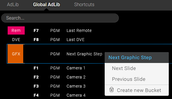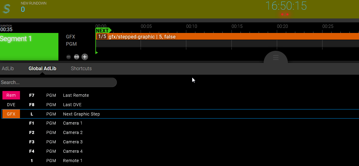 Example hotkey/streamdeck trigger in the Sofie UI: