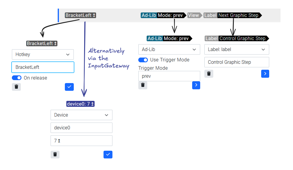 Trigger modes in Trigger system (key binding and/or streamdeck over input gateway)